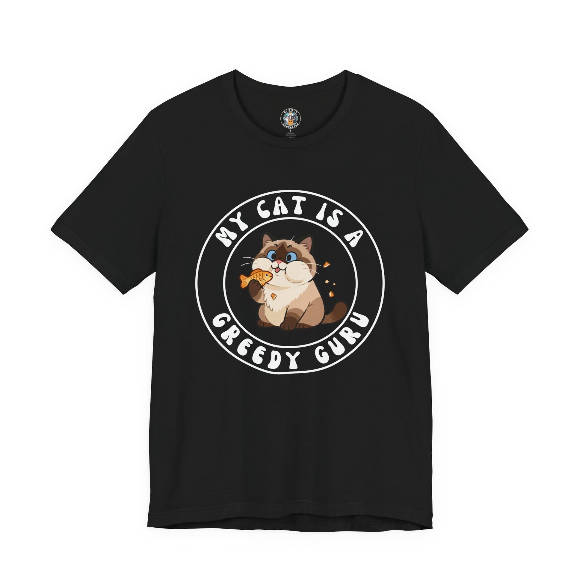 My Cat is a Greedy Guru - Dark Unisex Jersey Short Sleeve Tee