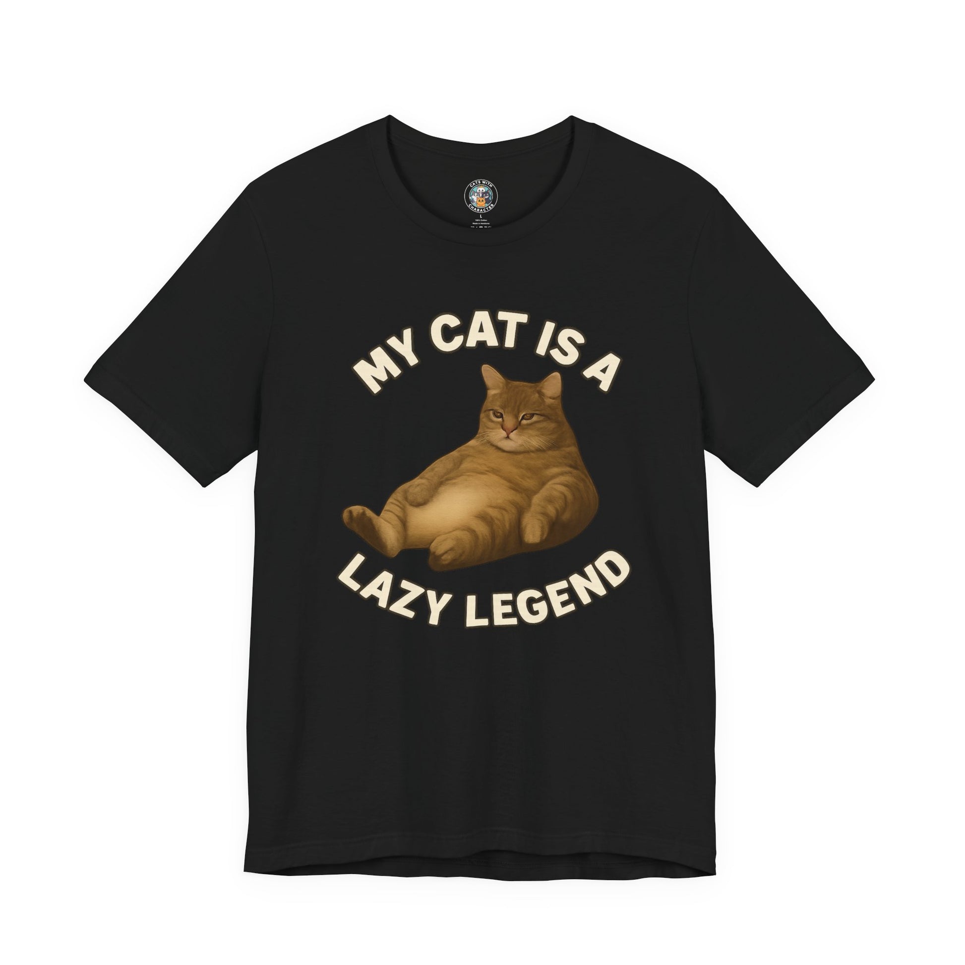 My Cat is a Lazy Legend- Paws in Focus Black Unisex Jersey Short Sleeve Tee